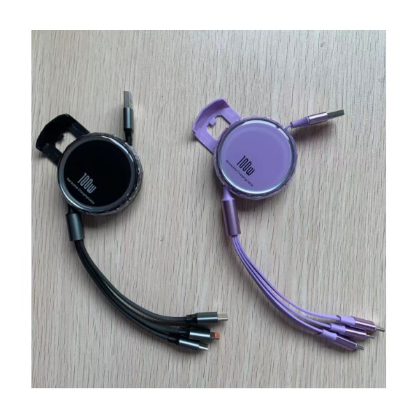 Two pull side rectractable 3 in 1 charging cable